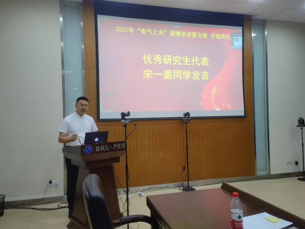 优秀研究生代表、第七届中国国际“互联网+”大学生创新创业大赛金奖得主宋一嘉同学作为学生代表发言。他结合自己的获奖经历分享了自己在重大电气的学习、生活体会,感谢学院深厚的历史底蕴给予其强大的学术自信、雄厚的师资水平构建其科研征途的坚强后盾,希望广大学弟学妹把握好机会,加入电气学院,不负时代,不负青春。