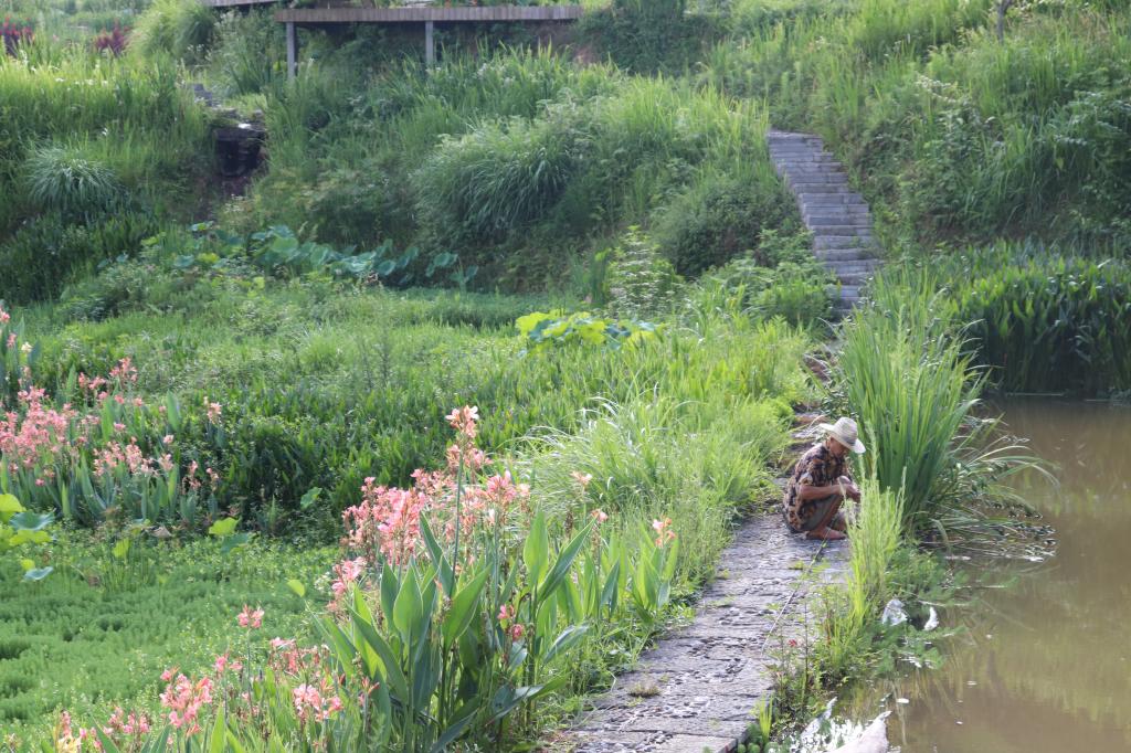 7月的堰塘村,梯田里的荷叶、荷花随着微风摇曳,显得格外清新,一朵朵碧绿的荷叶铺满了整片池塘,星星点点的荷花含苞待放,亭亭玉立于荷叶之上。远远看去成片成片的翠绿色中点染着星星点点的粉红,与山村的房屋,空中的白云,构成了一幅幅美丽的山水田园画。游客三五成群,流连忘返,一到周末,连停车场都“一位难求”。