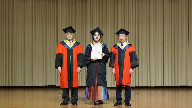 毕业典礼后举行学位授予仪式,学位获得者依次上台与师长嘉宾合影。