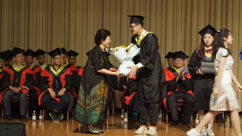 现场,胡建林教授和吴绍琪教授向优秀毕业生代表赠送礼物,毕业生代表则向吴绍琪教授献花,感谢孙才新院士教育基金管理委员会为全体毕业生赠送纪念品,在学生的成长中给予了莫大的帮助。