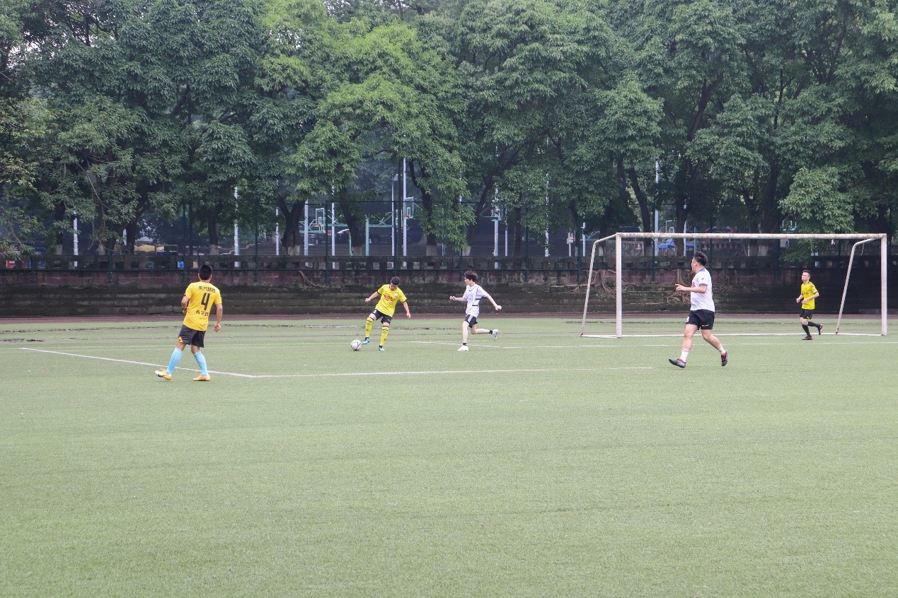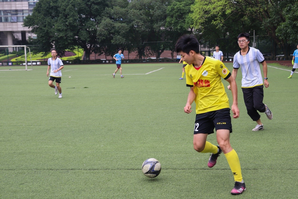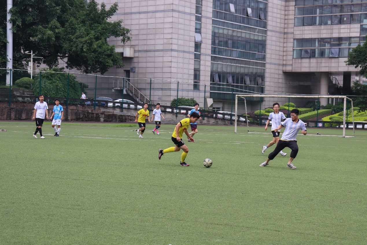 41分钟,李金锁禁区前带球晃过2名后卫推射破门;研二研三 2-2教工。