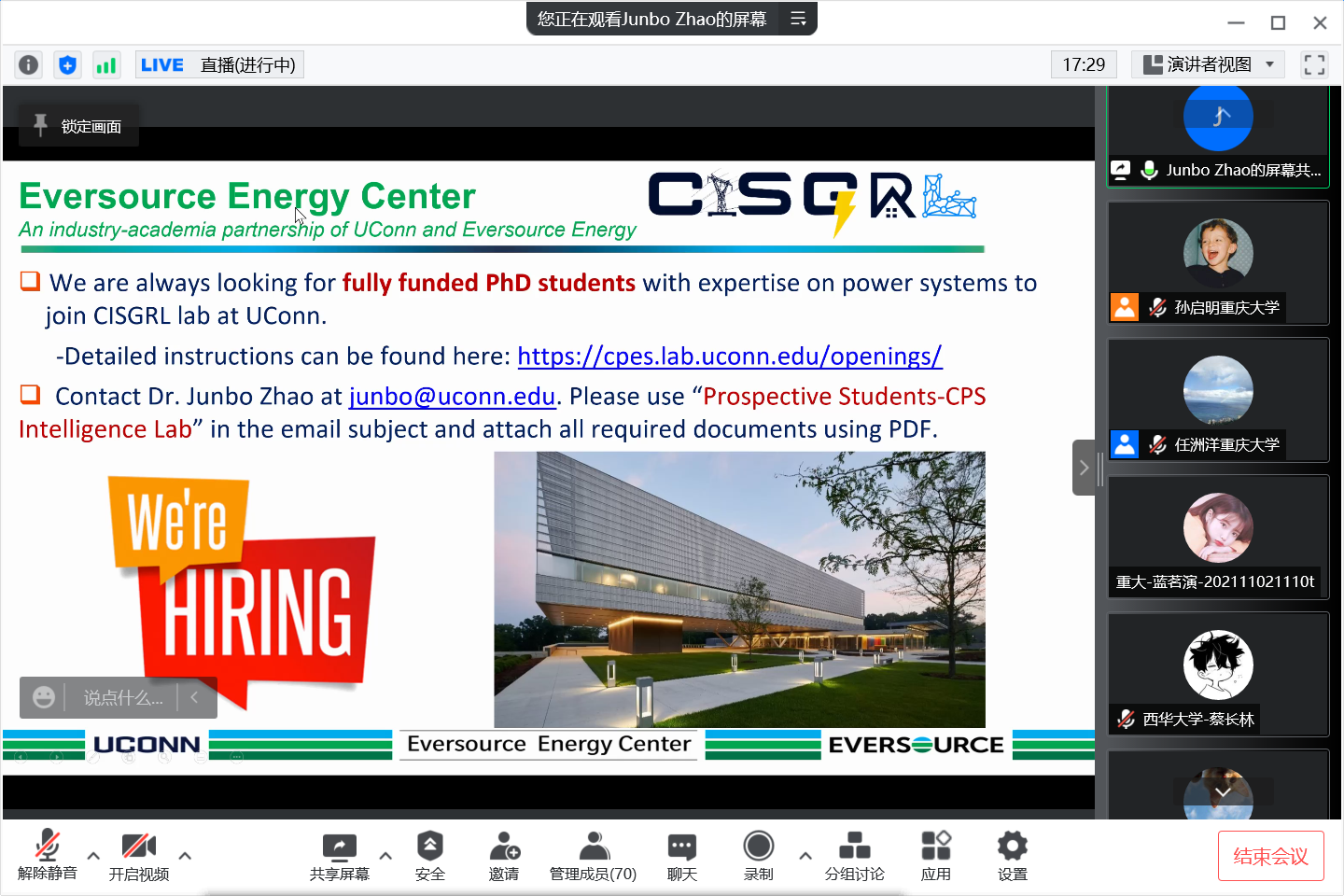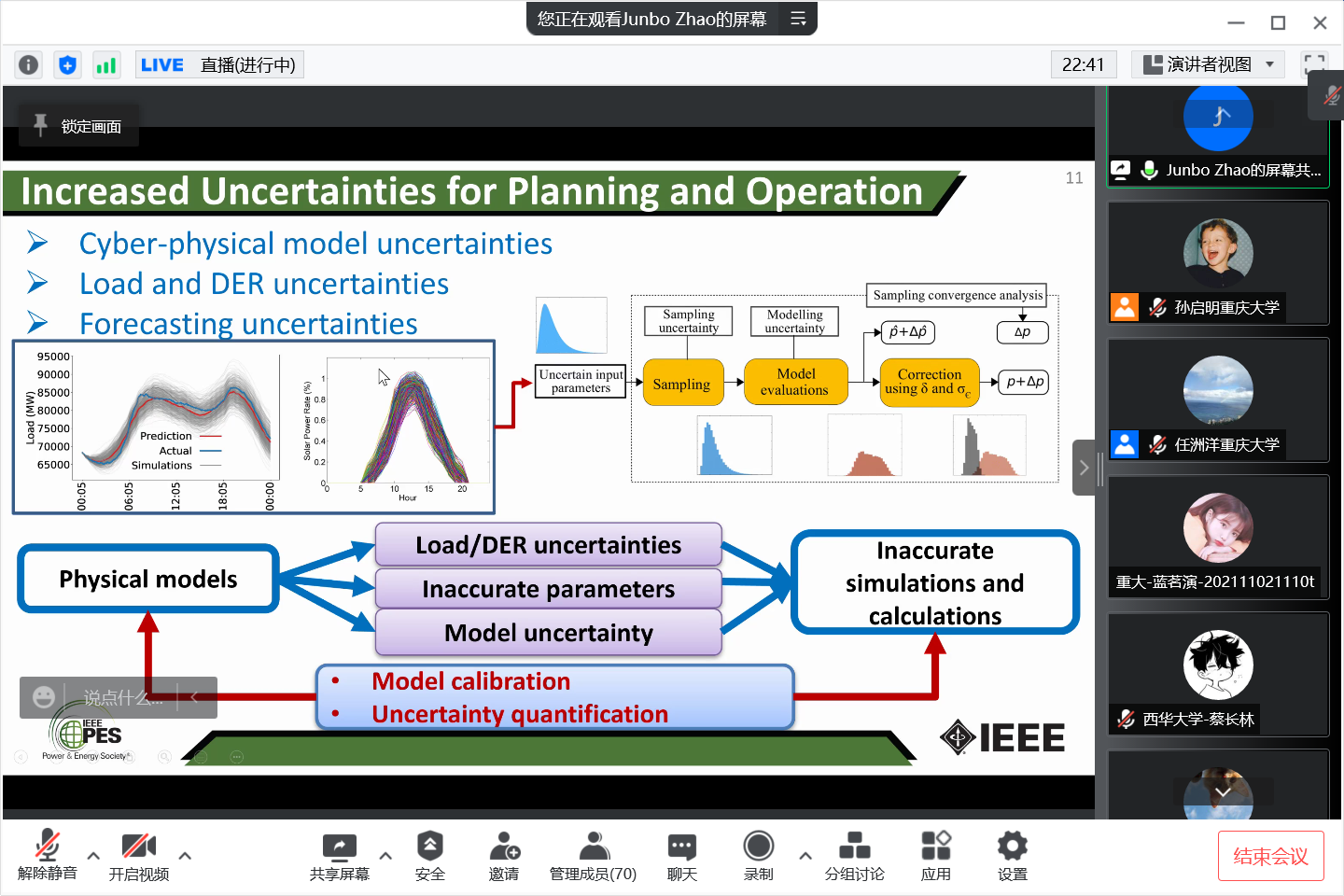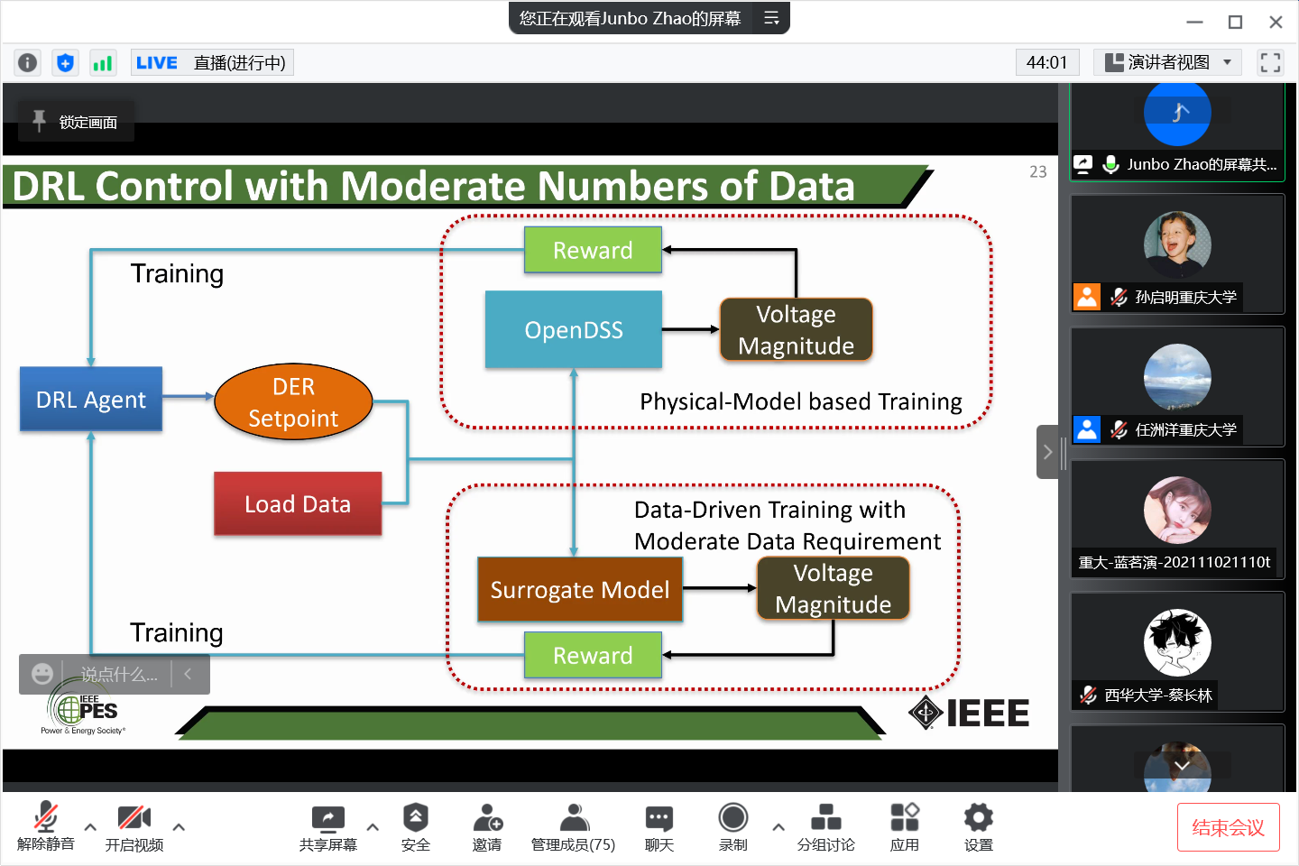 2022年4月24日上午,美国康涅狄格大学电气与计算机工程学院助理教授赵俊博受邀做客“成渝地区双城经济圈智慧能源大讲坛”,担任第十期主讲嘉宾,以“Physics-Informed Deep Reinforcement Learning for Power System Optimization and Control”为主题开讲。本期讲坛由91黄色网站