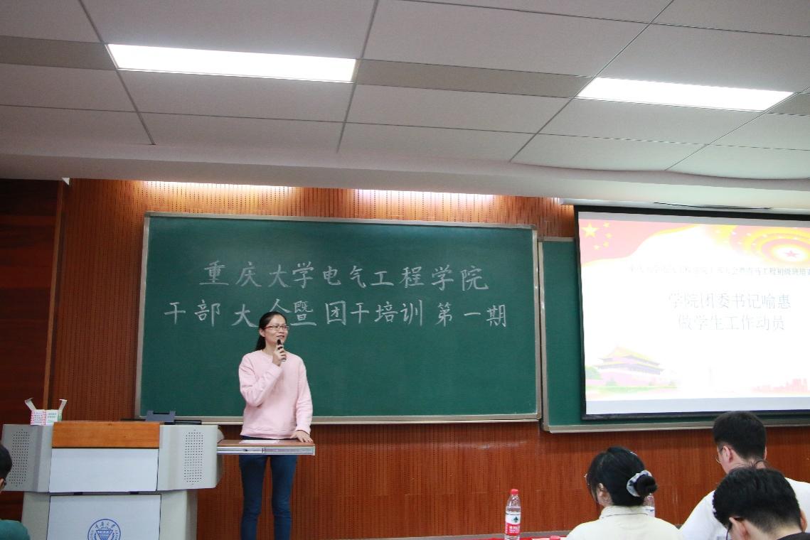 团委书记喻惠作总结发言。她将此后一年团委学生会的工作重点概括为加强学风建设、营造体健氛围、鼓励志愿服务、推动学科竞赛四个方面,同时就学习与工作的关系再次对学生干部们予以点拨。另外,喻惠老师强调了群众基础对学生干部的重要性,希望干部们力争上游、尽职尽责、与人融洽;以往届优秀学生干部为榜样,不忘初心,担起新一代团学干部应有的责任。