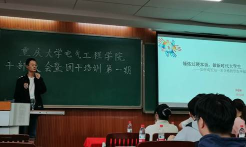 原学生会主席孙启明进行了工作经验分享。他从平衡与取舍的角度切入,结合自身经历阐明了学习竞赛与学生工作的关系,认为二者不是矛盾冲突而是相互促进的关系;然后,孙启明再从个人发展、部门协作、与师生沟通三个方面阐释了“如何做好学生工作”,并且对团学组织的具体事务给出建议,强调换位思考和主人翁意识在沟通协作中的重要性;最后,他总结了个人在三年学生工作中的心得体悟,表达了增强团队内部团结力、凝聚力,组建真正的电气团委“大”家庭的期盼。孙启明用踏实努力的前进脚步、厚积薄发的成就履历激励着台下的学生干部,会场氛围达到高点。