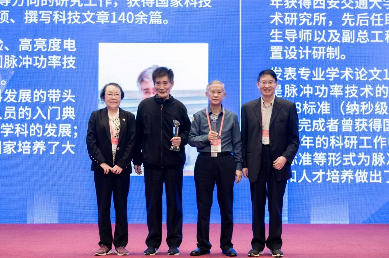 彭先觉院士、邱爱慈院士为脉冲功率突出贡献专家张恩官研究员、曾正中研究员颁发纪念奖杯