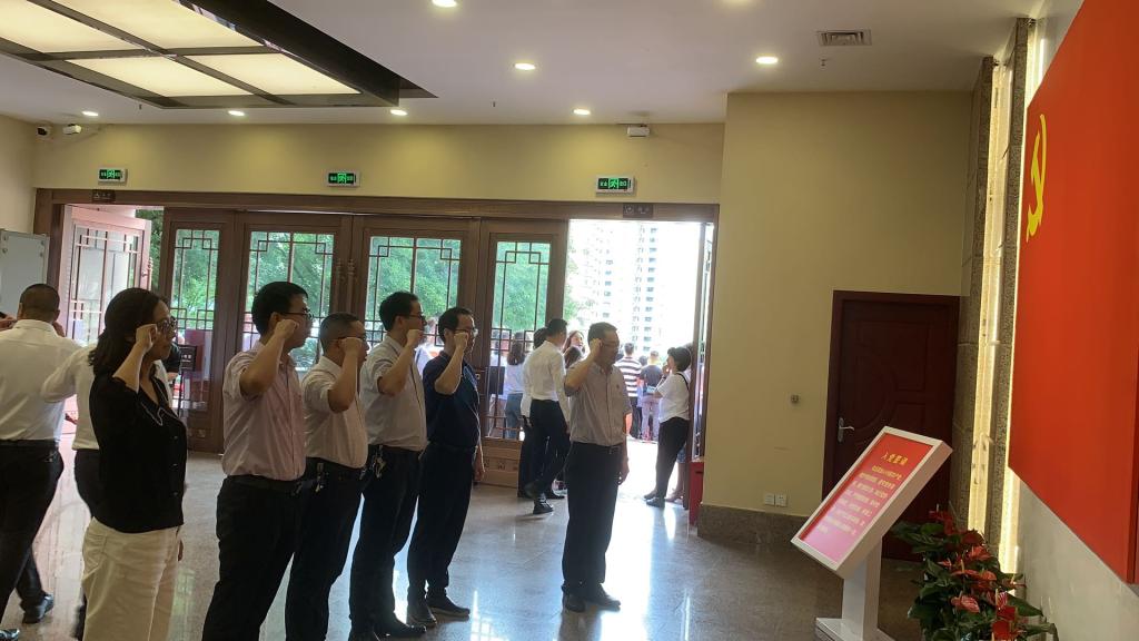 班子成员首先进入红岩革命纪念馆一楼宣誓厅,在谢开贵同志领誓下,全体成员面对中国共产党党旗重温入党誓词。