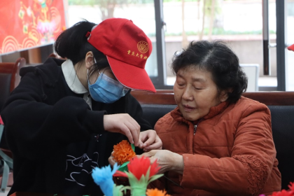 的志愿者们前往沙坪坝区天星桥干休所看望军休干部,为他们组织了一次制作纸花的手工活动。
