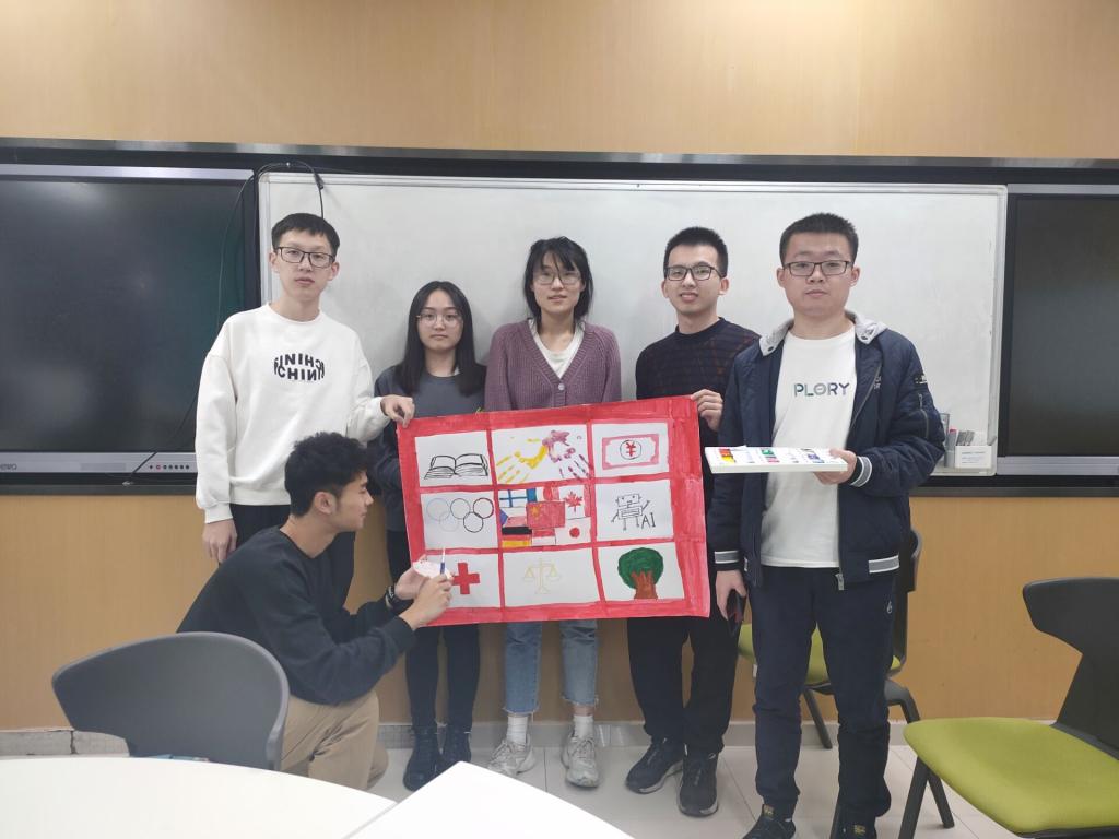 经过一番热烈的讨论后,参会的党员同志分成两组,进行主题党日活动的最后一个环节,以“2035年,我和我的祖国”为题完成一幅海报。经过一个小时的精心创作,党员同志绘制了两幅美好蓝图,展现了各位党员对祖国明天的美好祝愿。