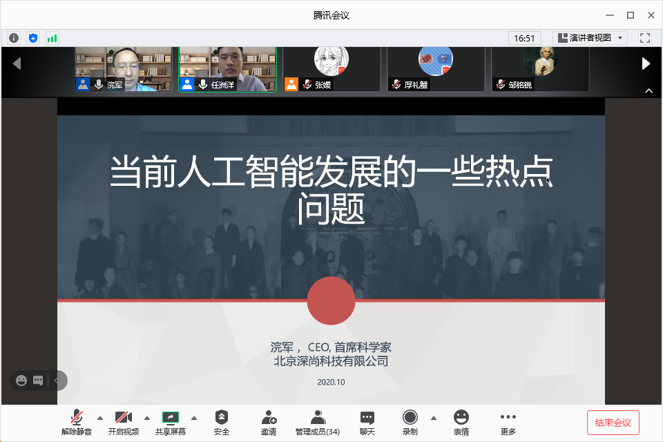 2020年10月31日下午,北京深尚科技有限公司首席科学家和CEO、复旦大学和西安交通大学特聘教授浣军受邀做客“智慧能源云讲堂”,担任第七期的主讲嘉宾,以“当前人工智能研究和应用的一些热点问题”为主题开讲。本期学术讲座由91黄色网站