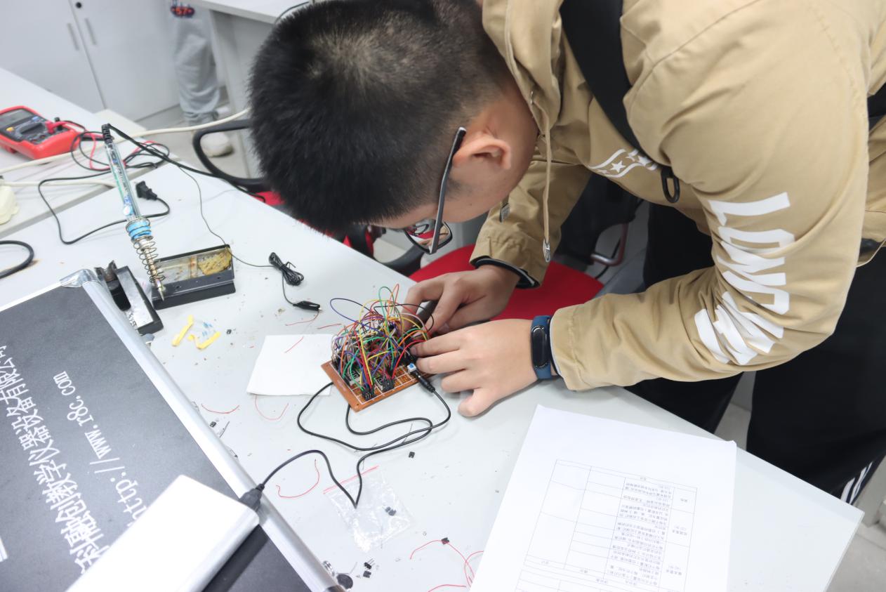 从电路的设计与焊接到程序的编写与调试,同学们在未知中探索,在探索中成长,。真心祝愿我院“树声前锋杯”电工电子技能大赛越办越好,也希望同学们能在今后的学习中一步步由成长走向成熟!