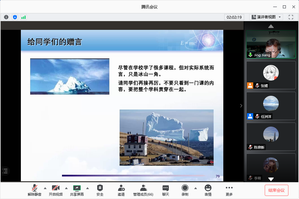 在“From Energy to Electrical Power Systems–a Holistic View” 主题报告中,姜晶院士将生动有趣的视频与案例相结合,介绍了能源转换、发电、传输和分配的传统过程和系统,讲解了可再生能源系统、智能电网、分布式发电和微电网等前沿内容,不仅给同学们提供了电力系统的整体概念,也向大家展示了多学科的交叉和融合,从而激发同学们对所学专业的兴趣。