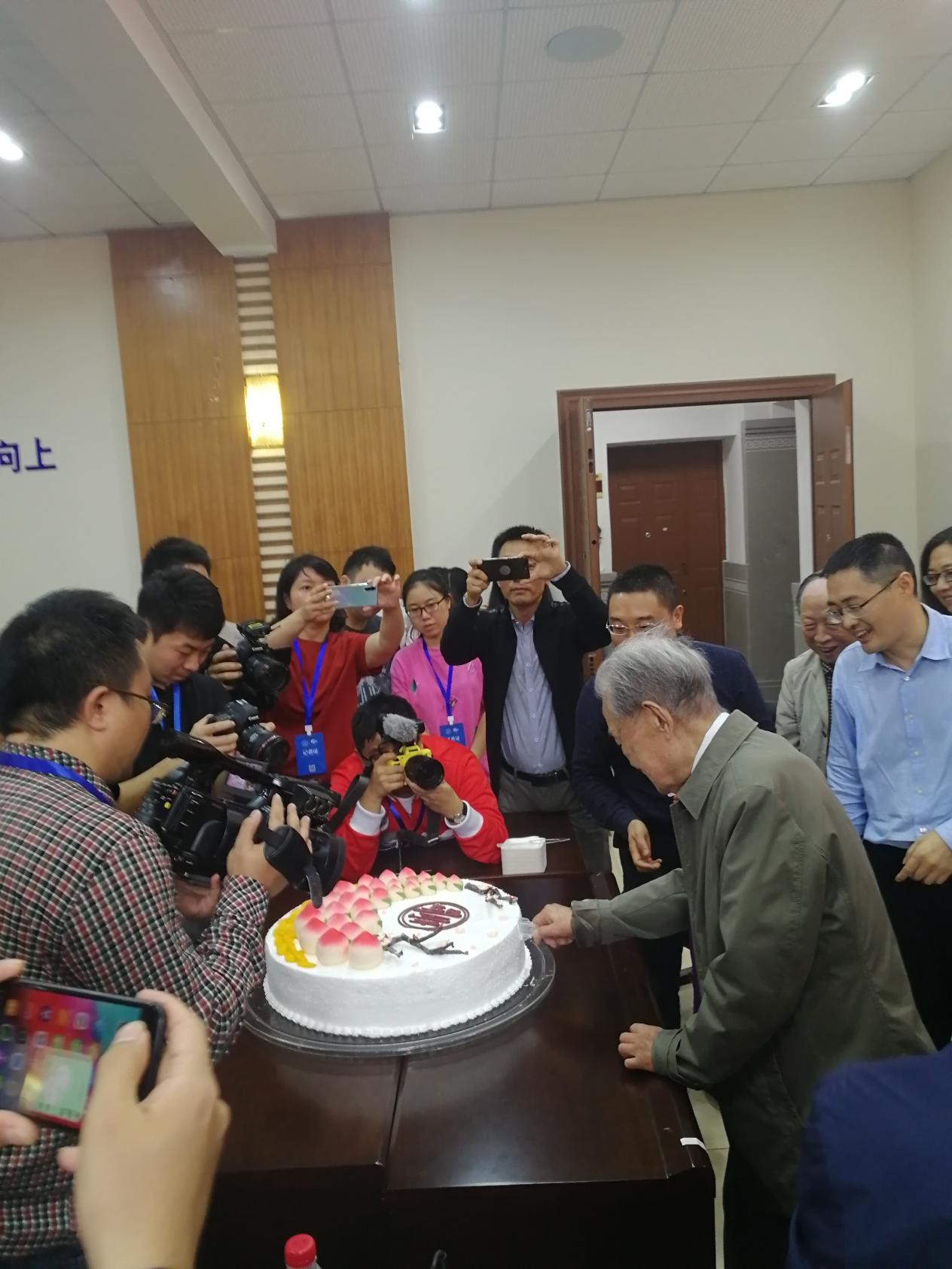 成立90周年的当天恰好是校友丁老先生95岁的生日。学院为这位校友特别准备了生日蛋糕,在场所有人共同为这位校友唱起了生日祝福歌,丁老先生十分感动,他感谢了在场的各位校友,希望大家一起共同庆祝母校成立90周年。他说,他们那个年代比较落后,发电机组容量小,居民区、工业区都是按计划用电,他的工作职责就是拉闸限电。现在电气行业发展的又快又好,在全世界都处于领先地位,他感到十分开心。