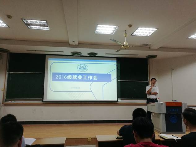 在理科楼225举行了2016级就业动员大会。本次会议内容主要针对就业问题以及三方协议的签订展开。与会人员有学院党委副书记吴嘉书记、2016级辅导员胡力方老师、兼职辅导员唐娟、熊雄以及2016级全体同学。