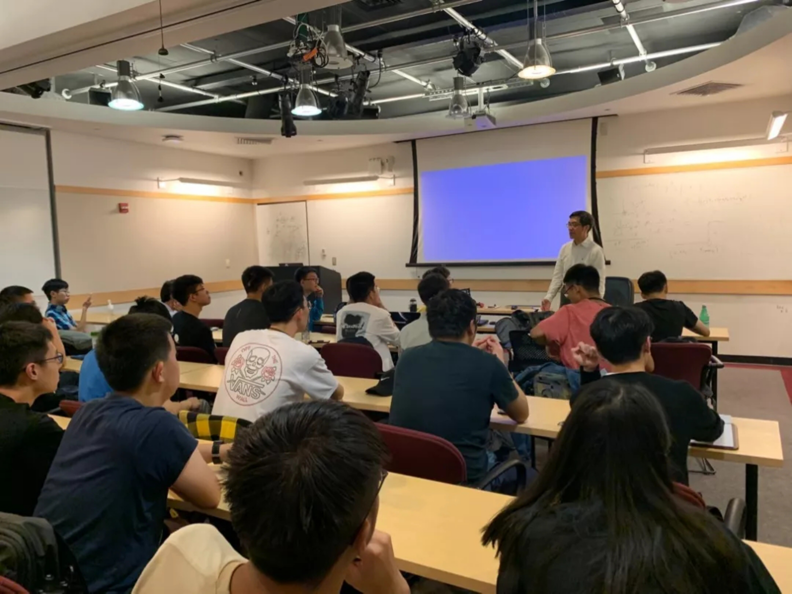 在伯克利分校,我们有幸聆听华人Allen教授为我们讲课,讲述内容主要是关于人工智能(AI)的一些知识,包括人工智能的定义,机械人三大准则。同时举了一些已经在生活中出现或者虚构出来的人工智能的例子,并耐心地为我们讲述了一些推理算法的知识,生动而形象,同学们收获颇多。Allen教授还亲手编写了代码,做成了可实现摄像功能的遥控小车,引得同学们一片赞叹。其间,恰逢学院老师陈民铀教授在这所大学进行项目合作,他来到教室,就着自己经历为我们讲述了中美电气工程专业的差异,同学们积极提问,气氛热烈。
