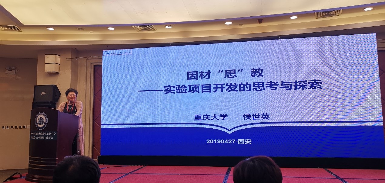 4月27日上午,侯世英以“因材‘思’教——示范中心建设中实验项目开发的思考与探索”为题,从新工科建设对课程教学的要求、实验课程教学设计思考、实验项目设计举例等三个方面,分享了在新时代背景下实验项目开发的方法以及实验课程群的建设经验。她在展望中说到:我们应抓住新工科、双一流建设的机遇,紧扣专业认证、人才培养的要求,促进理论与实践等五个融合,建设优质“金课”。