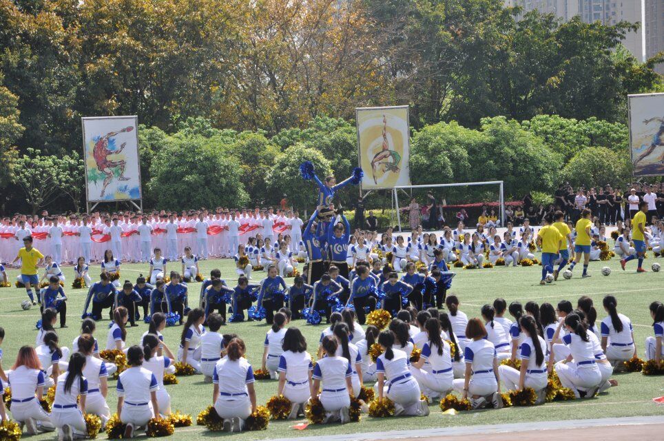 之后是团体操表演。近千名学生组成花球操队、旗操队在操场中央伴着激昂的音乐不停变换造型。他们带来的精彩表演令人眼花缭乱,更是收获了雷鸣般掌声。最后举行的是校园“健康跑”活动。同学和老师们都积极参加,顶着骄阳绕校园跑步3公里。他们挥洒着汗水并享受着运动的乐趣,自信地冲过终点[2] 。