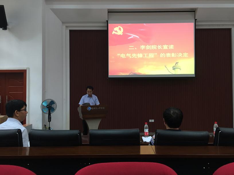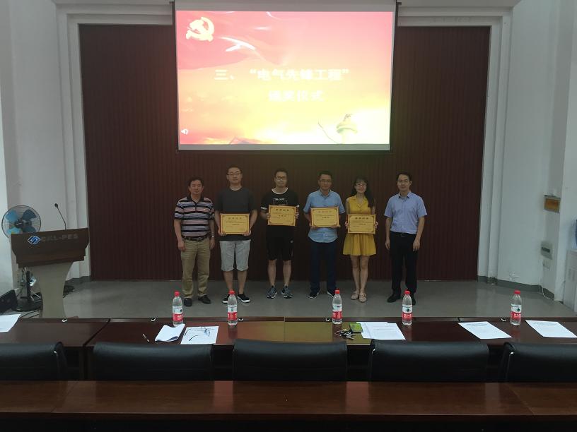 关于2017—2018学年度“电气先锋工程”暨“两学一做”的表彰决定》。为表彰先进、弘扬正气、树立榜样,经院内各党支部推荐,学院党委扩大会对2017~2018学年度“电气先锋工程”先进集体和个人进行了评选,决定授予行政办公室教工党支部等4个党支部“先进党支部”称号,决定授予李景灿等17名同志“优秀共产党员”称号,决定授予王唯同志“优秀党务工作者”称号。