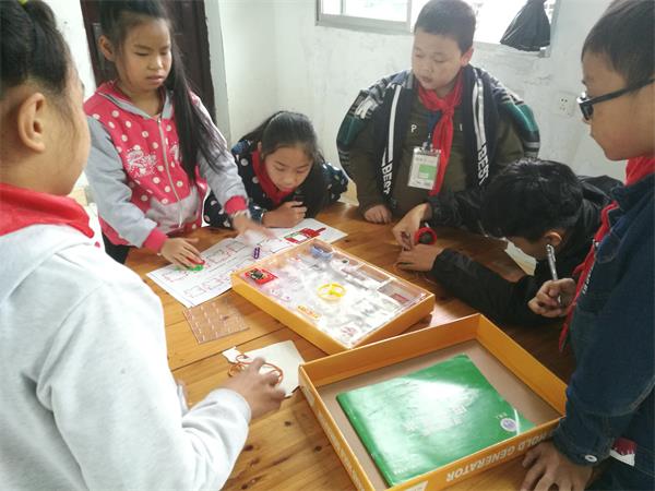 大路小学方面,志愿者带领孩子们体验了电子积木,在拼装玩耍的过程中向孩子们介绍了一些常见的电子元器件,并让孩子们亲手设计组装简单的积木电路。从未接触过的试验道具充分调动起了孩子们的学习兴趣,在“玩耍”中,孩子们收获了基本的电路常识,也锻炼了动手能力。