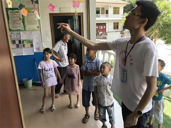 晚上,正当志愿者们准备关上幼儿园的卷帘门继续夜间工作时,附近玩耍的几个小朋友纷纷跑上前来向志愿者询问明天正式课程的实验内容。看着孩子们期待的目光,志愿者们想起了昨天探访老乡时所见孩子们的艰苦生活状况,感到欣慰的同时也感受到了更加深切的责任感。随着科技支教活动的正式开始,志愿者们将秉承本次“三下乡”科技支教活动“精准扶贫·爱心筑梦”的宗旨,用自身的学识和志愿服务热情,努力发光发热。