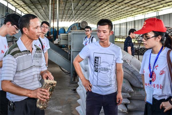 暑期“三下乡”实践团来到黔江地区展开脱贫调研工作。 农业工厂,助力脱贫攻坚 7月17日,实践团到达黔江区重庆中喔农业发展有限公司。该公司充分利用当地自然条件,立足乡间,建立专业香菇生产基地,是一家标准化、规模化、现代化的香菇种植基地。 在农业现代化建设的过程中,中喔公司采用全自动喷雾灌溉系统,科学用水以达到有效节水的目的;使用大型冷藏室,保证了香菇的新鲜感,延长其保质期;购置全自动套装菌棒机器,减少人工繁琐的程序。 据厂长介绍,在利用现代化设备的情况下,仅供给西南地区的永辉超市一天的菌类量就有20余吨。志愿者屈宸辰对这个数字表示震惊:“在现代化工序下,菌类的产量竟然能够如此之高,满足了这么多大型超市的需求。” “农业现代化是地区发展的有力法宝。”厂长说,“种植业在黔江是重点产业,只有实现现代化、自动化,才可以真正让农民们富起来。这些年来,政府给予我们资金上面的大力支持,让我们得到了快速的发展。我们也会继续努力,逐步实现大型化、产业化,真正带动当地香菇产业的发展。”