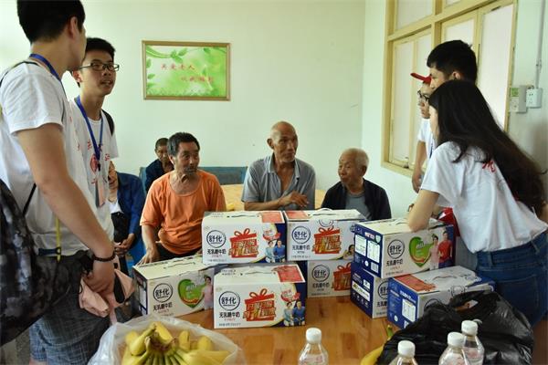 “三下乡”团队全体成员于2017年7月17日来到重庆市黔江区冯家敬老院开展慰问活动。下乡团队爱心到,敬老院里欢声起。 上午10点,“三下乡”团队全体成员准时到达冯家敬老院。看到老人们,他们便想到自己的爷爷奶奶,所以一进门便围坐在一起陪老人们聊起家常。年逾90的侯爷爷已在这里生活了近20年。说起近几年生活的变化,老人笑了起来:“这几年党和政府资助敬老院的钱多了。这不?又在屋子里面添了个电磁炉,可以自己加个餐了!”老人朴实的话语引得在场的志愿者们也露出了会心的笑容。“以前只是知道扶贫脱贫,今天从老人们生活条件的变化中才真真切切感受到这些政策给人民带来的好处。”志愿者小赵说。