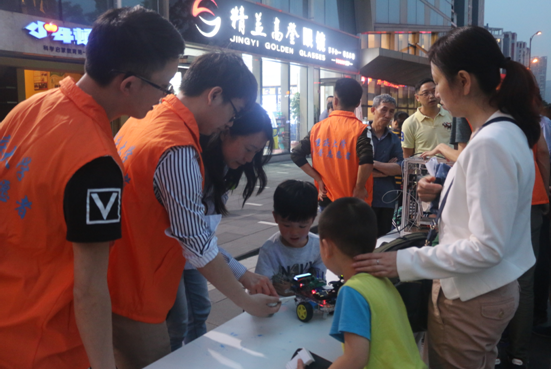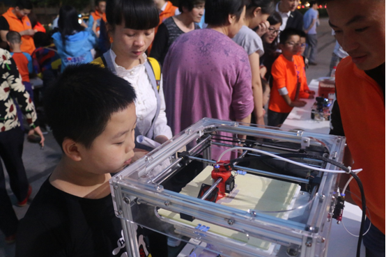 特别是,5班“智能平衡小车”和“3D打印机”吸引了不少社区居民和孩子们的关注。在学习原理后,社区居民和孩子们分别动手操作,并不断提出疑惑,在动手实践中尽情释放触摸科技的快乐心情。