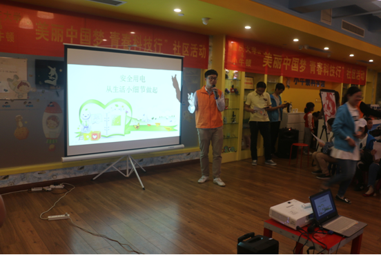 科技处副处长、科协秘书长刘敢新率队,本科2014级第一党支部、“弘毅”科普志愿服务队共21名学生为40余个亲子家庭带来趣味科普活动。此次主题科普活动由2班代靓君、蒋丽华和余佳微策划组织,主要包括分享科技前沿、介绍用电安全及趣味科技体验活动,注重科学性、知识性、趣味性和互动性。