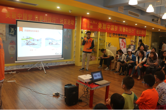 在讲座环节,4班余辉宗、董大初分别围绕“电是什么”、“电用来做什么”介绍了电的起源发展和电动方程式赛车等,并以生活实例向孩子们提问,孩子们表现积极、踊跃举手回答。4班韦超详细讲解了“用电安全”,重点结合实际案例,使用浅显易懂的图片,提高了孩子们及家长安全用电的意识。