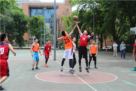 2017研究生篮球赛晋级赛在A区竹林篮球场打响。经过角逐,研三新技术、研二高压队获得胜利,晋级决赛。