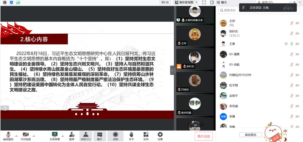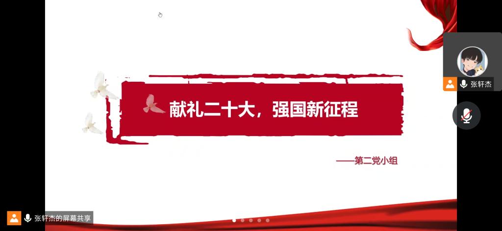 本科生一支部在线上开展了本学期第二次组织生活,本次组织生活以“献礼二十大,强国新征程”为主题,由张轩杰同志主持,一支部全体党员参加。