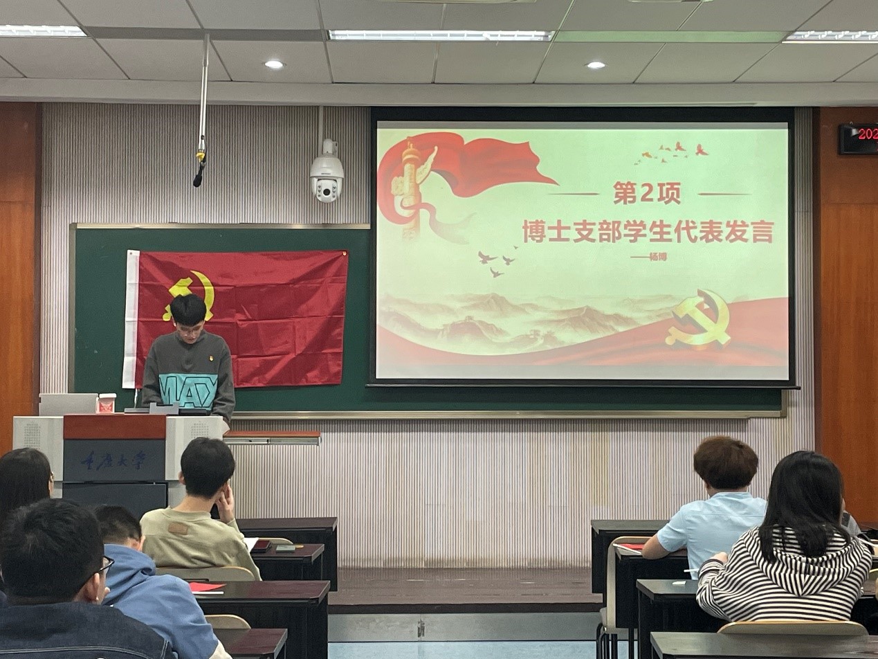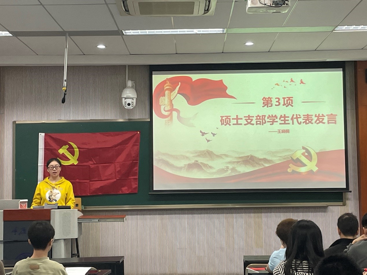 活动第二个环节,博士一支部的党员代表轮流发言,他们将自己的科研经历与学习党的二十大精神的感受结合起来,分享了自己对科研工作的无限热忱和勇挑重担的奋斗激情,表达了要以实际行动为科教兴国、人才强国、绿色发展战略贡献力量的决心。