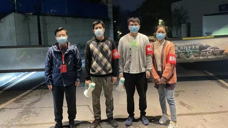 王建老师在小区业主群内得知转运配送工作量大、物业人手极度短缺等情况后,主动报名加入配送志愿服务队。手上的教学科研任务还很繁重,但王老师克服种种困难,协调工作安排,连续数日投入到小区物资转运配送服务和小区巡逻、劝导、宣传和维护秩序工作。初冬的重庆天气已经渐凉,但是一趟趟物资运送下来,王老师跑得汗流浃背、腿脚酸软。