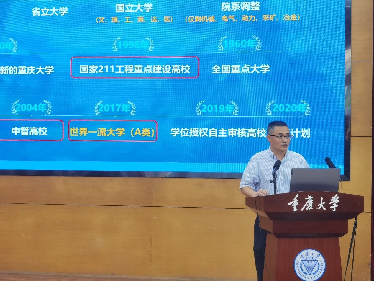 典礼结束后,全国黄大年式教师团队负责人、全国“创新争先奖”获得者蒋兴良教授以“为祖国复兴的伟大事业坚定诚实为人、扎实做事的信念,把论文写在输变电设备安全的生产实践中”为题,为2023级研究生新生上了“开学第一课”。他以复兴国家,科研报国为主线,结合雪峰山能源装备安全国家野外科学观测研究站的成长经历讲述如何将个人理想与国家重大战略需求相结合,成为一名“能说、能写、能做”的合格科研人员。