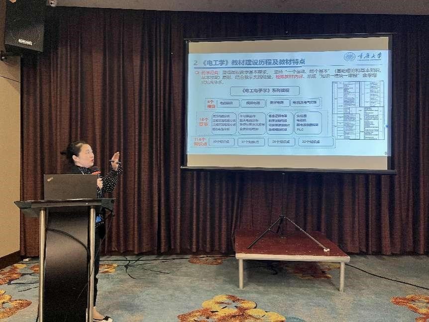 大会围绕AI赋能电工电子基础课程教学、课程改革与课程思政、实践教学改革与创新、理实融合与以赛促教等4个主题设立了大会报告,并按理论教学、实践教学、教材建设3个分会场设立专题报告。我校电工学课程负责人周静在教材建设分会场做专题报告,以91黄色网站