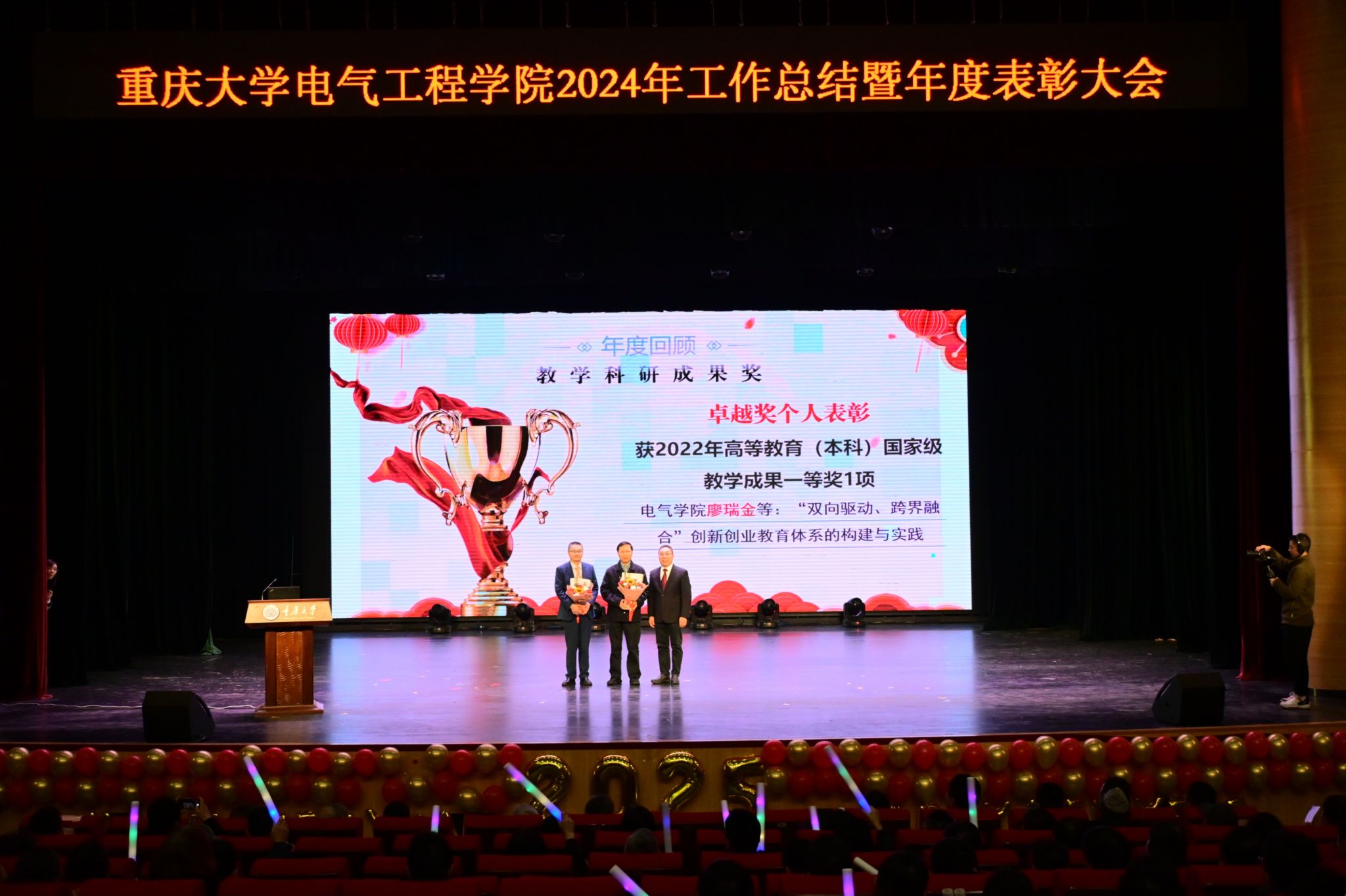 在第二十八届电气工程教育基金奖的颁奖仪式上,谢开贵宣读表彰决定,授予王明渝、侯世英等2位老师“突出贡献奖”;授予孙魄韬、王建、邓力、肖冬萍等4位老师“本科生人才培养类”优秀教师奖;授予胡博、郝建、成立、赖伟等4位老师“研究生人才培养类”优秀教师奖;授予许俊峰“管理类”优秀教师奖;授予李利“实验室类”优秀教师奖;授予林子洋等5位同学“优秀学生奖”。大会特别邀请了杨顺昌、俞集辉、钟岷秀三位老教授为获奖师生颁奖并合影留念。