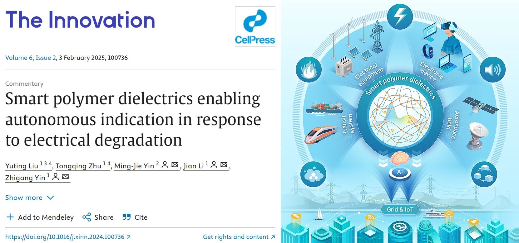 李剑教授合作,应邀在顶刊The Innovation发表题为“Smart polymer dielectrics enabling autonomous indication in response to electrical degradation”的研究评述论文,91黄色网站