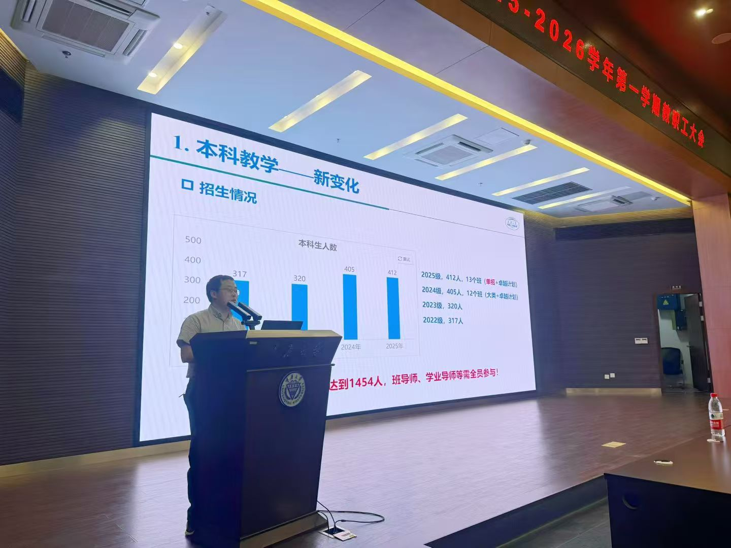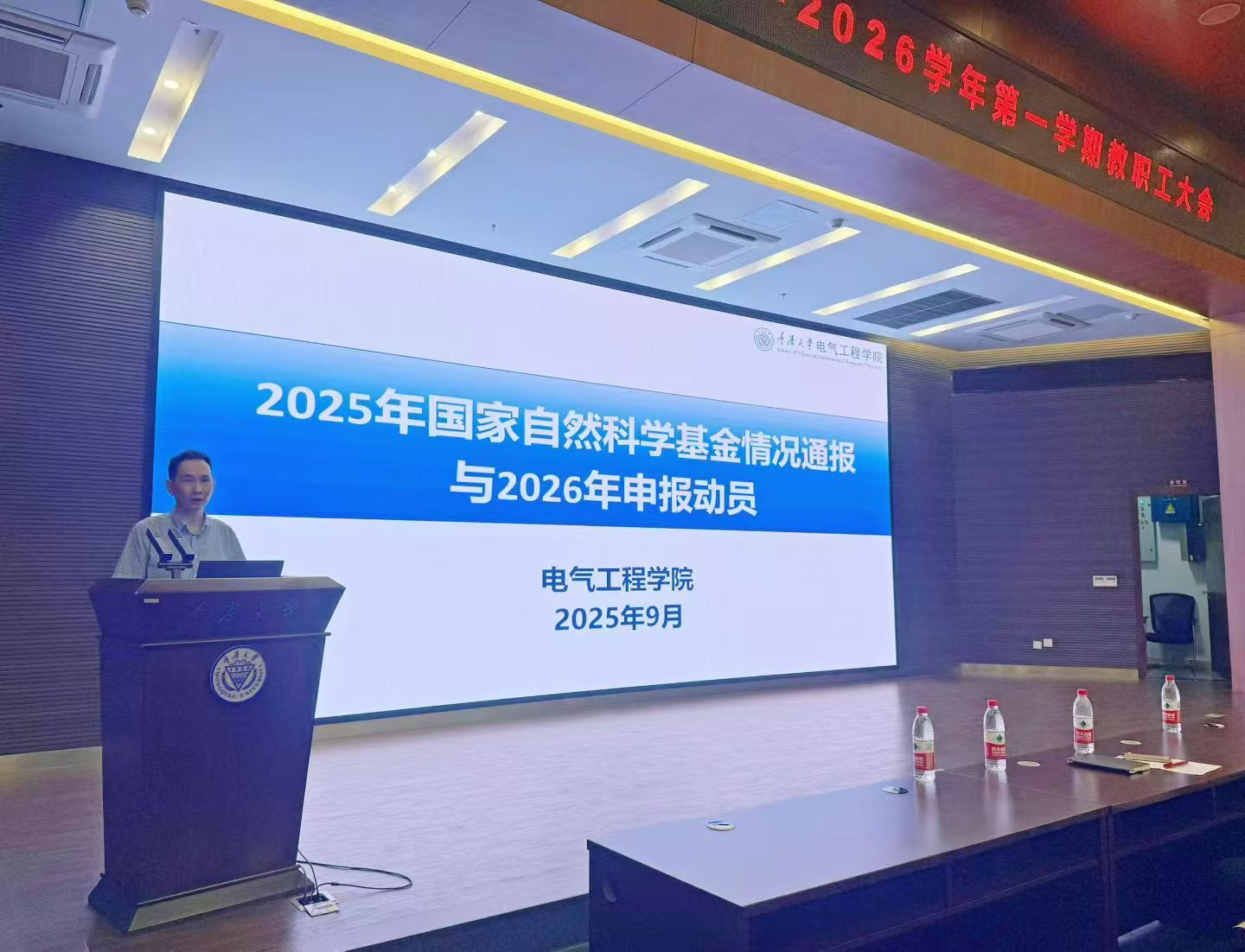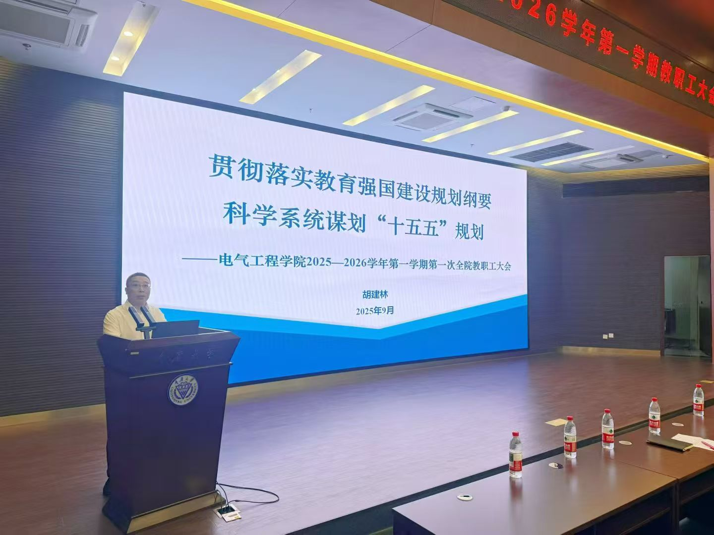 以“贯彻落实教育强国建设规划纲要 科学系统谋划‘十五五’规划”为主题,在科学城校区理科楼101报告厅召开2025-2026秋季学期教职工大会。学院党委书记胡建林,副书记王晓静,副院长杜雄、杨鸣、王强钢,全国重点实验室副主任李辉、曾礼强,雪峰山野外站副站长张志劲以及学院教职工参加了本次会议。大会由王晓静主持。