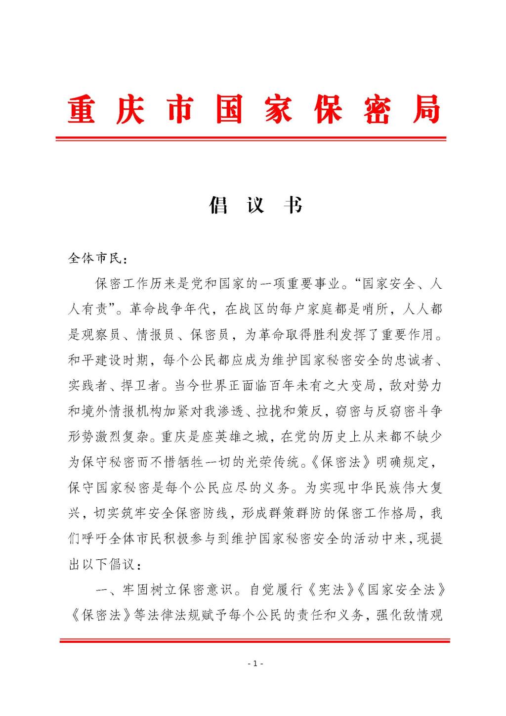 倡议书-保密工作守土有责、守土负责、守土尽责