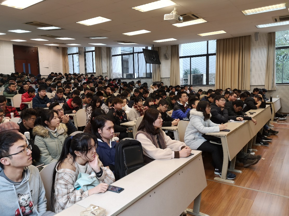 喻老师回顾总结了同学们在2019年取得的优秀成绩与成果,并表扬2班、4班、6班、8班、10班等班级在本年度的杰出表现。与大一上学期获奖数量进行对比,同学们各类奖项的持有数较大一上学期大大提高。借此,喻老师鼓励同学们向他们学习。
