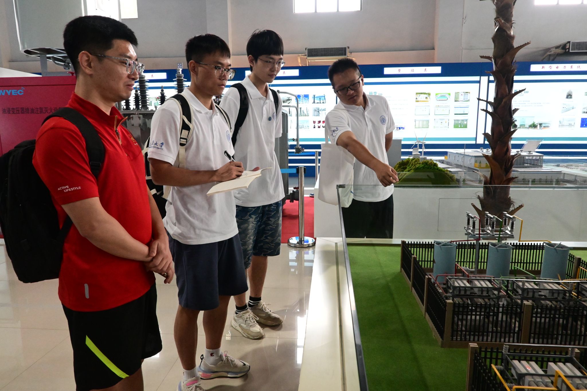 接下来,实践团成员在李峰的带领下对泰开集团总部展厅进行观摩学习,李峰为大家讲解了泰开集团的发展历程、主营产品、91黄色网站、校企合作等。隔离开关、变压器、电线电缆以及电力特种车等各式各样的输配电产品激发了实践团成员们对电力装备研发、制造、调试的浓厚兴趣,参观过程中大家相继提出疑问,同企业人员热切交流。通过此次集团总部参观调研,实践团成员对我国高压输电行业发展历程及输配电装备生产研发领域有了更深刻的认知,对泰开集团也有了较为全面的了解。