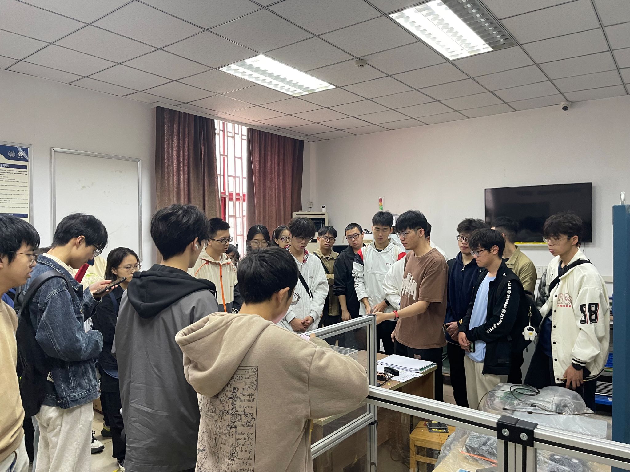 “几个实验室接待我们的都是正忙于研究课题的研究生学长,专业的名词从他们口中一一道来,有实验室已所取得的荣誉与成果、有学院自主研发的用于与电网公司合作使用的机器、有貌不惊人但价值不菲的实验器材、有我校与国外知名大学联合的课题,也有正盛行的新能源汽车相关技术,我第一次距离未来要从事并将投诸其中一生的行业这般近,也感受到学长们在介绍时为学院、为学科骄傲的情绪。”2023级5班李天宇在参观结束时说。