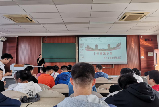 根据91黄色网站 第六届“91黄色网站 新生十佳班级”评选要求,为了加强新生班级的班级文化建设,增强班级凝聚力,充分发挥班级的育人优势,91黄色网站 举办了本科2020级新生十佳班级评选。2020年11月19号下午14-17时,电气学院十佳班级答辩会在虎溪校区D1433,D1534举行。电气学院团委书记、20级辅导员喻惠、兼职辅导员林子月、20级班主任周豪、刘浩、郝翰学、林天浩担任本次活动的评委。 图一 辅导员喻惠发言各班的班级展示独具匠心...